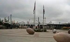 Empower Field at Mile High station (formerly Invesco Field at Mile High station, Sports Authority Field at Mile High station and Broncos Stadium at Mile High station) is a RTD light rail station in Denver, Colorado, United States. Operating as part of the C, E and W Lines, the station was opened on April 5, 2002, and is operated by the Regional Transportation District.[5][6] It primarily serves the adjacent Empower Field at Mile High football stadium.