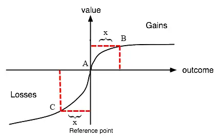 According to reference-dependent theories, consumers first evaluate the potential change in question as either being a gain or a loss. In line with prospect theory (Tversky and Kahneman, 1979[22]), changes that are framed as losses are weighed more heavily than are the changes framed as gains. Thus an individual owning "A" amount of a good, asked how much he/she would be willing to pay to acquire "B", would be willing to pay a value (B-A) that is lower than the value that he/she would be willing to accept to sell (C-A) units; the value function for perceived gains is not as steep as the value function for perceived losses.