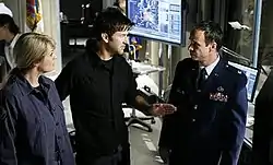 ![]() Sheppard, Carter and Davis discuss how to defend Earth from an approaching super Wraith Hive Ship | |