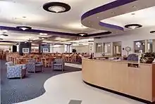 - Gymnasium/Cafeteria "C-Wing": Located off B Corridor, which houses the Athletic Heritage Hall. Stairs off the corridor lead down to the basement level where the gym and locker rooms are located. In 2016, the gymnasium wing was expanded; the two floor gymnasium addition created new cardio wellness and weight rooms, athletic training facilities, new locker rooms, and a new separate lobby entrance for event attendees. There is also an auxiliary gym for extra practice space and locker rooms for visiting teams. An expanded cafeteria that seats nearly 700 students is part of this wing, including new culinary labs.