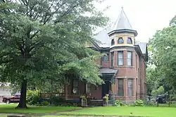The Engelberger House is a historic house at 2105 North Maple Street in North Little Rock, Arkansas. It is a two-story wood-frame structure, with a hip roof and asymmetrical massing characteristic of the Queen Anne style of architecture. It has several projecting gable sections, an octagonal tower at one corner, and a porch that wraps around two sides. It was built in 1895 by Alonzo "Lonnie" Clayton, an African American jockey and the youngest to win the Kentucky Derby. Lonnie was 15 years old when he won the Kentucky Derby in 1892. The Engelberger House[2] is one of only two high-style Queen Anne houses in the city (the other is the Baker House).[3]