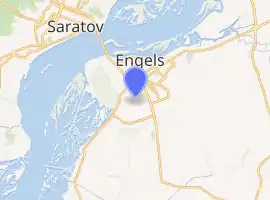 Engels (Russian: Энгельс, IPA: [ˈɛnɡʲɪlʲs]), formerly known as Pokrovsk and Kosakenstadt, is a city in Saratov Oblast, Russia. It is a port located on the Volga River across from Saratov, the administrative center of the oblast, and is connected to it with a bridge. It is the second-largest city in Saratov Oblast with a population of 202,419 (2010 Census)[2]. Historically an important center for Volga Germans, the city was known jointly as Pokrovsk in Russian and as Kosakenstadt in German, until it was renamed after Friedrich Engels in 1931. Engels served as the capital of the Volga German Autonomous Soviet Socialist Republic from 1918 to 1941.
