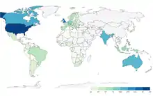 In 2022, for English Wikipedia, Americans accounted for about 40% of active editors, followed by English and Indian editors accounting for about 10% of each, and Canadian and Australian at about 5%.[22]