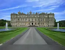 The great houses are the largest of the country houses; in truth palaces, built by the country's most powerful – these were designed to display their owners' power or ambitions to power.[10] Really large unfortified or barely fortified houses began to take over from the traditional castles of the crown and magnates during the Tudor period, with vast houses such as Hampton Court Palace and Burghley House, and continued until the 18th century with houses such as Castle Howard, Kedleston Hall and Holkham Hall.[11] Such building reached its zenith from the late 17th century until the mid-18th century; these houses were often completely built or rebuilt in their entirety by one eminent architect in the most fashionable architectural style of the day and often have a suite of Baroque state apartments, typically in enfilade, reserved for the most eminent guests, the entertainment of whom was of paramount importance in establishing and maintaining the power of the owner. The common denominator of this category of English country houses is that they were designed to be lived in with a certain degree of ceremony and pomp. It was not unusual for the family to have a small suite of rooms for withdrawing in privacy away from the multitude that lived in the household. These houses were always an alternative residence to a London house.