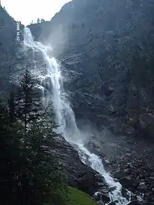The Engstligen Falls near Adelboden in the Bernese Highlands consists of two waterfalls, Engstligen Fall I & II (German: Engstligenfall I & II) of heights of 97 metres (318 ft), and 165 metres (541 ft), respectively).[1] They are listed in the Swiss Inventory of Landscapes of National Significance.