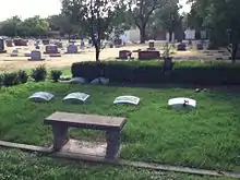 Black people were interred in Potter's Field during segregation, and had a separate entrance to the cemetery. The plots in this section were the least expensive, and many of the graves are unmarked. Local legend holds that Boston Corbett, who shot the assassin John Wilkes Booth is buried in one of these unmarked graves.[3] Corbett was known to have peddled medicine in Enid for W.W. Garrit and Company of Topeka.[4] More famous to the Enid area, is a corpse that never received a burial—that of David E. George, a drifter, who claimed to be Booth himself, and committed suicide in Enid's Grand Hotel in 1903.[5] His body, ultimately claimed by his lawyer, Finis L. Bates, went on a nationwide tour for over 50 years before ultimately disappearing.[5]