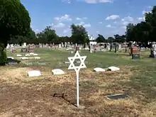 A magen david is mounted on a metal pole near the graves of Enid's Jewish citizens who chose to be buried close to one another, forming a Jewish section in the Enid Cemetery.