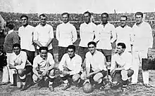 ![]() Enrique Ballesteros (third from the left standing) with the team of Uruguay in 1930. | |||||||||||||||||||||||||