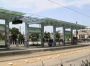 Ensemble/HCC is an island platformed METRORail light rail station in Houston, Texas, United States. The station was opened on January 1, 2004,[1] and is operated by the Metropolitan Transit Authority of Harris County, Texas (METRO). Located Midtown,[2] this station is close to both the Houston Community College System's Central College campus and The Ensemble Theatre, which together give the station its name.