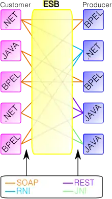 - Enterprise - the concept has been originally invented to reduce complexity of enterprise application integration within an enterprise; the restriction has become obsolete since modern Internet communication is no longer limited to a corporate entity