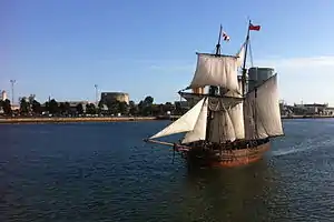 Planning of a replica began in 1989 and construction commenced in 1991, with the keel laid at the Melbourne Maritime Museum.[1][2] It was completed at the Old Ports and Harbour Yard in Williamstown, Victoria, and was officially launched by Felicity Kennett, the wife of the Premier of Victoria, Jeff Kennett, on the 162nd Melbourne Day in 1997.[1]