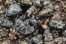 Some researchers have proposed entomophagy as a solution to policy incoherence created by traditional agriculture, by which conditions are created which favor a few insect species, which then multiply and are termed "pests".[54] In parts of Mexico, the grasshopper Sphenarium purpurascens is controlled by its capture and use as food. Such strategies allow decreased use of pesticide and create a source of income for farmers totaling nearly US$3000 per family. Environmental impact aside, some argue that pesticide use is inefficient economically due to its destruction of insects which may contain up to 75 percent animal protein in order to save crops containing no more than 14 percent protein.[54]