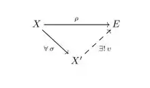 - A morphism in is called an extension of the object in the class of morphisms with respect to the class of morphisms , if , and for any morphism from the class there exists a unique morphism in such that .