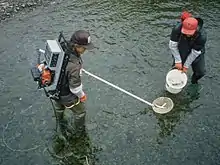 However, in more generalised environmental monitoring, many animals act as robust indicators of the quality of the environment that they are experiencing or have experienced in the recent past.[30] One of the most familiar examples is the monitoring of numbers of Salmonid fish such as brown trout or Atlantic salmon in river systems and lakes to detect slow trends in adverse environmental effects. The steep decline in salmonid fish populations was one of the early indications of the problem that later became known as acid rain.