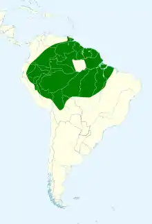 The epaulet oriole is found in Bolivia, Brazil, Colombia, Ecuador, French Guiana, Guyana, Peru, and Suriname.