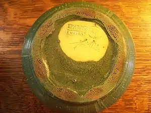 Ephraim Faience Pottery is an American art pottery company founded in 1996 in Deerfield, Wisconsin, United States by Kevin Hicks and two partners who have since left the company. It is now located in Lake Mills, Wisconsin. The company produces art pottery in the tradition of the Arts and Crafts Movement with matte glazes over sculpted earthenware in editions of no more than 500 pieces. It produces primarily vases, as well as bowls, lidded boxes, candleholders, pitchers and lanterns. In the past, it has also produced tiles and sculpted paperweights. A prototypical Ephraim Faience piece is a vase finished in a matte green background color, and embellished with sculpted decorative representations of plant or animal life. The company also produces pieces in other colors and in non-representational designs. In 2009, the company employed eight artisans.