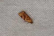 The wingspan is 12–14 mm. The forewings are ochreous whitish, with a lustrous sheen. The markings are bright ferruginous. The hindwings are grey.[1]