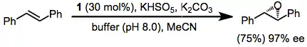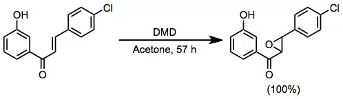 Enantioselective epoxidation using dioxiranes exploits one of two strategies: (1) oxidation by DMD of a chiral metal catalyst followed by epoxidation, or (2) epoxidation by chiral dioxiranes, which are generated in situ from a catalytic amount of ketone and a stoichiometric amount of a terminal oxidant).[4] Mn-salen complexes have been used with success to accomplish the first strategy.[6]