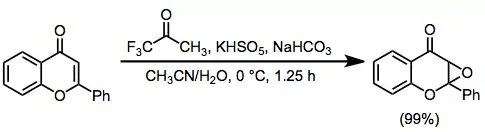 Electron-poor double bonds take much longer to epoxidize. Heating may be used to encourage oxidation, although the reaction temperature should never exceed 50 °C, to avoid decomposition of the dioxirane.[9]