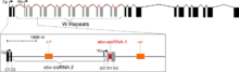 In EBV, sisRNAs are generated from a region known as the W repeats. This region is transcribed during a type of viral latency that is highly oncogenic (latency type III) and also in a rare type of latency (Wp-restricted latency) observed in ~15% of endemic Burkitt's lymphoma.[7] Splicing of these W repeat transcripts produces a short intron and a long intron (Fig. 1), both of which accumulate to high abundance in EBV-infected human B cells. Indeed, ebv-sisRNA-1 is the third most abundantly produced EBV RNA after EBER1 and EBER2, which are highly expressed in EBV-infected cells.,[8][9] The presence of these RNAs in a pathogenic form of latency suggests roles in EBV-associated cancers.[4]