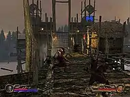 The majority of the game is taken up by third-person combat, usually on foot. At the start of the game the player can use four "combo" attacks. Additionally, they can use three basic magic attacks: magic push/pull (Thrysta Vindr), magic shield (Skölir), and magic fire (Brisingr). These three magic attacks can be utilised in different ways (for example, Brisingr arrows, or throwing spears in baskets magically). On the PC and console versions (excluding the Xbox 360 version) there are sixteen levels.[5]