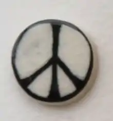 The CND acknowledges Austen as the maker of the first ND badges, but attributes the design of the symbol to Gerald Holtom. These earliest badges were made in ceramic (fireclay) – which Austen noted would mean they could be among the very few man-made objects to survive a nuclear inferno. Austen is quoted as saying of the design: "the gesture of despair had long been associated with the death of Man and the circle with the unborn child."[3] In 2017 Austen's daughter Gea launched online petitions at change.org and 38 Degrees, addressed to the CND, Jeremy Corbyn (leader of the Labour Party) and Kate Hudson (General secretary of CND), asking that her father should be recognised as having designed the CND symbol.[4][5]