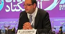 Eric LeCompte is an American commentator on politics, finance and religion.[2] He serves on a working group with the UN Conference on Trade and Development.[3][4] He is the current executive director of Jubilee USA Network.[5][6] Prior to working with Jubilee USA, he served as the event coordinator at School of the Americas Watch.[7]