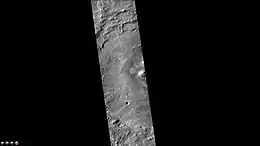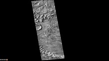 The Eridania quadrangle lies between 30° and 65° south latitude and 180° and 240° west longitude on the planet Mars. Most of the classic region named Terra Cimmeria is found within this quadrangle. Part of the Electris deposits, a 100–200 meters thick, light-toned deposit covers the Eridania quadrangle.[2] Many slopes in Eridania contain gullies, which are believed to be caused by flowing water.