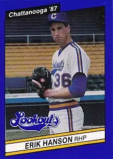 Erik Brian Hanson (born May 18, 1965) is a former Major League Baseball pitcher. During an 11-year baseball career, he pitched for the Seattle Mariners (1988–1993), Cincinnati Reds (1994), Boston Red Sox (1995), and Toronto Blue Jays (1996–1998), and was known for possessing an excellent curveball.