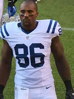 After going undrafted in the 2014 NFL Draft, Swoope signed with the Indianapolis Colts on May 11, 2014.[5][6] and was waived on August 30.[6] The Colts then signed Swoope to their practice squad on September 1, and on January 19, 2015, he signed a reserve/future contract to remain with the Colts.[6] Swoope was waived by the Colts on September 5, and signed to the practice squad the next day.[7][6] On December 30, 2015, Swoope was elevated to the active roster for the first time, after Dwayne Allen was placed on injured reserve.[8][6]
