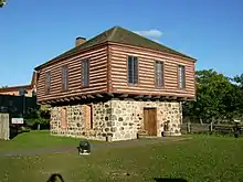 The Clergue blockhouse was originally a powder magazine at a North West Company trading post[8] before the merger of the North West Company and the Hudson's Bay Company. When the last remaining factor at the post resigned in 1867[8] the site fell into disuse, until only the powder magazine's foundation building remained. American industrialist F.H. Clergue then purchased the property and began the process of transforming it from powder magazine to living space. He lived in the blockhouse from 1894 to 1902.[9]