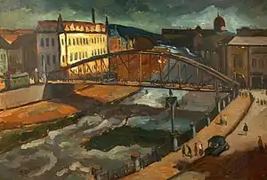 After returning from Paris, he held his first solo exhibition in Oradea and was married shortly thereafter. From 1912 to 1914, he exhibited in Stockholm, Gothenburg, Copenhagen and several cities in Germany, but he always made Nagyvárad his center of activity. During this time, he also helped organize an art and literature society called "Holnap" (Tomorrow).[1] He was often referred to as the "painter of Nagyvárad".