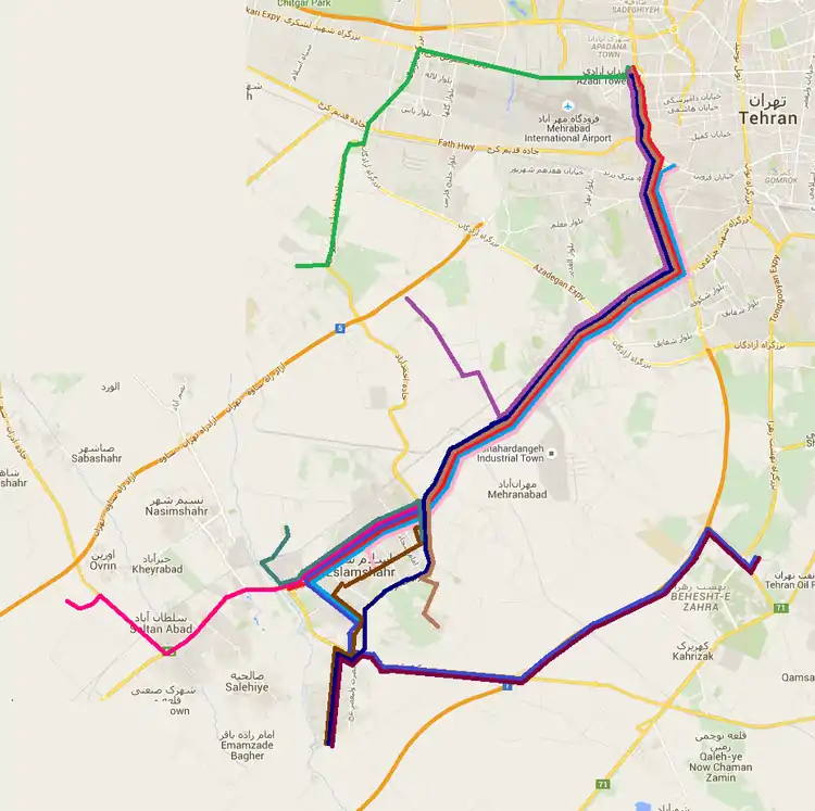 - "سارمان اتوبوسرانی اسلامشهر و حومه-مشخصات خطوط سازمان اتوبوسرانی اسلامشهر". www.eslamshahr.ir. Archived from the original on 2015-07-10.