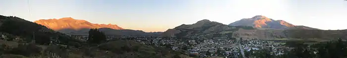 Owing to its location on the immediate leeward side of the Andes, Esquel has a cool summer Mediterranean climate (Köppen Csb) bordering on a Humid continental climate (Köppen Dsb). [1] Other climate systems, such as the Trewartha climate classification, place it within the oceanic zone (Do), like much of Western Europe and the Pacific Northwest. Temperatures are relatively cold for its climate due to its higher altitude.[1] Summers are mild with warm temperatures during the afternoon followed by cool nights.[2] The mean temperature during the summer is around 14 °C (57.2 °F).[1] It's the sunniest season, averaging as much as 10 hours of sunshine per day in January with an average of 7–8 clear days and only 5-7 overcast days.[1][3] Spring and fall are transition seasons featuring mild temperatures during the day and cool to cold nights.[2] Spring starts out with cool temperatures during the day and very cold nights which progressively becomes warmer.[2] Both spring and fall have highly variable weather.[4]