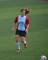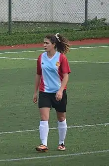 Esra Solmaz (born March 20, 1995) is a Turkish women's football striker, who last played in the Turkish Women's Third League for Balokesir Büyükşehir Belediyespor with jersey number 9. In 2011, she played for the Turkish girls' national U-17 team.[1]