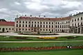 The first architect to work on the project was Johann Ferdinand Mödlhammer, succeeded in 1765 by Melchior Hefele.[1] While the palace is often compared to Versailles, which the Prince had visited in 1764 when he visited Paris,[2][3] H. C. Robbins Landon claims that a more direct influence can be found in "Austrian prototypes, particularly Schönbrunn palace in Vienna."