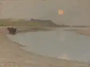 Other visitors to the area included the landscapist George W. Picknell (1864–1943)[45] and the maritime artist John "Wichita Bill" Noble (1874–1934),[46] both of whom spent some years in France at that time. Of the other painters of marine subjects associated with the town, Frederick Frary Fursman (1874-1943) spent summers there between 1906-9[47] while Augustus Koopman (1869–1914) kept a studio in Étaples from 1908 and died there in 1914.[48] Yet another visitor was Caleb Arnold Slade (1882-1961), who made annual stays for some seven years until 1915. His "Moonlight at Etaples" looks over the glimmering Canche to the silhouetted buildings of Trépied on the ridge behind[49] and justifies his description as an American Impressionist.