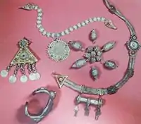 Body jewellery as a specific type of our ethno-culture, in a particular manner depict the folk arts of this nature and they have been extended broadly as artistic productions amongst us. Thus the values under possession of the institution (Museum) and 230 exhibits of this treasure which have been shown by the fund of the Museum of Kosovo as selected, and they were sent to Belgrade for temporary exhibition in 1998, which are of complex, unique, artistic profile, with multi-dimensional values at the same time they illustrate in complex manner the layered historical nature of this segment of material and spiritual ethno-culture of the people by also involving the artistic and artisanal character, which has been built in special manner amongst our people. These treasures contain in themselves also qualitative specifics because they are accompanied by elements which have played a non-portrait role; a component which has been preserved as an element of spiritual culture since pre-history until today in all our ethnic background. Treasure of body jewelleries in the aspect of construction of motifs are made simply with classical tools but through which their complex meaning diversity is shown, and the harmonized arrangement of ornamentals is a perfect shape in the objects belonging different ages, and through which that present motifs where people's beliefs of the tradition are involved, the youth love, family love, love for the successors, the love for spouse and national symbols, symbols people's faith related to cult and other accessory elements intermingled in them.