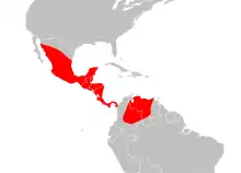| The range of Eublaberus posticus in Central and South America, shown in red | |