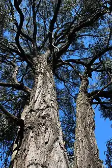 Eucalyptus beyeriana, commonly known as Beyer's ironbark,[3] is a small tree that is endemic to New South Wales. It has dark grey to black "ironbark", lance-shaped adult leaves, flower buds in groups of seven, white flowers and cup-shaped to conical or shortened spherical fruit. Its name is disputed with some authors considering it to be a synonym of Eucalyptus beyeri.