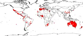 Eucalyptus camaldulensis has the widest natural distribution of any eucalyptus species. It is commonly found along waterways and there are only a few locations where the species is found away from a watercourse.[23][24]