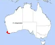 - "Eucalyptus megacarpa". Apace. Retrieved 11 December 2017.