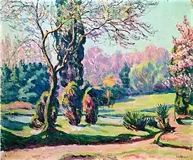 He made his first, brief visit to Crozant in 1887. A longer stay followed in 1891. By 1905, he and his wife, Marcelle, had built a home there, called "La Roca", where they stayed every summer. It soon became a gathering point for the artists' colony. His best friends there included the poet, Maurice Rollinat, and the Impressionist painter Armand Guillaumin, who was a major influence on his middle-period style. Later, he would be more influenced by Cézanne.[4] He was regular exhibitor at the Salon d'Automne.