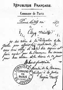 Louis Charles Eugène Protot (27 January 1839 –17 February 1921) was a French lawyer (avocat) and a political opponent of the Second Empire. During the Paris Commune in 1871, he was minister of justice for a month before going into exile until 1880. After his return to France he was prevented from working at the Bar and earned a living as a specialist in Oriental languages.