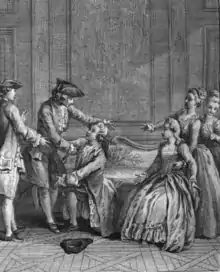 The premier of Eugénie was delayed for some time by the illness of one of its stars, Préville, who was to play the role of The Baron. There was much buzz about the play before the opening, and its premier was well-attended; but the audience's reception was lukewarm, evidently due to the play's long running-time. Beaumarchais and the cast spent the next two days revising the script, and the result was a greater success. Until the premiere of The Barber of Seville several years later, Eugénie was Beaumarchais's most famous play. It was adapted in English by Elizabeth Griffith as The School for Rakes in 1769—a direct translation was difficult to make as Beaumarchais, despite setting the story in England, demonstrated a poor understanding of British culture and law.[1]