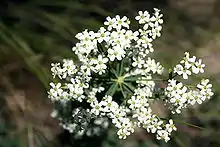 Euphorbia corollata is an herbaceous perennial plant in the family Euphorbiaceae that is native to North America. A common name for the species is flowering spurge.[1] It has a milky sap that can cause skin and eye irritation in some people. It grows up to 1 m (3 ft) tall, with smooth stems and light green leaves arranged alternately or in whorls. Leaves are about 10 mm (1/2 in) wide and 75 mm (3 in) long. Each stem terminates in a panicle 20 to 25 mm (3/4 to 1 in) across. Flowers are about 6 mm (1/4 in) across and consist of one pistillate and several staminate flowers surrounded by five white bracts - not petals but formed from the involucre at the base of the flowers.[2] Flowering spurge blooms from June to September.[3]