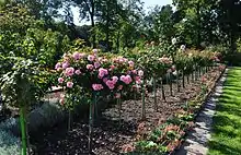 The Europa-Rosarium, formerly the Rosarium Sangerhausen, is a municipal rose garden located in Sangerhausen, Saxony-Anhalt, Germany. With 8300 cultivars and species[1] it is one of the largest rose collection in the world, playing an important role as budwood source and in research.[2] In 2003 it was granted the Award of Garden Excellence by the World Federation of Rose Societies.[3]