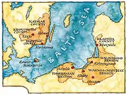 Soon after the Committee convened for the first time on 17 November 1997. On 22 February 1998 in Malbork, Poland, the Agreement on Establishing the Euroregion 'Baltic'[3] was signed by representatives of regions from six countries including: the Bornholm County (Denmark), Liepāja (Latvia), Klaipeda County, cities of Klaipeda, Palanga and Neringa (Lithuania), Elbląg, Gdańsk, Słupsk and Olsztyn provinces, (Poland), representatives of the Association of Municipalities of Kaliningrad Region (Russia), Blekinge City and Kalmar County and Kronoberg County (Sweden).[4]
