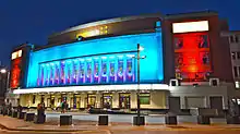Electro Velvet performed their entry representing the UK at the Eurovision Song Contest 2015, "Still in Love with You". This performance did not appear on the televised show, but was exclusively done for the audience members of the concert hall itself and was later uploaded on the BBC's social media pages and YouTube channel.[17] The interval act for the show was Riverdance.[18] The theatrical show mainly consisting of traditional Irish music and dance, and featuring Irish dancing champions Jean Butler and Michael Flatley, with a score composed by Limerick native Bill Whelan, originated as an interval performance during the Eurovision Song Contest 1994.[19][20]