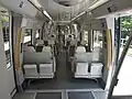 Each train has 94 seats, with additional space for 202 standing passengers.[2] Internally, the three cars are connected with open gangways. Wheelchair space is provided at one end of the intermediate car,[8] the doors near it are equipped with ramps.[3] All trains have dedicated spaces for passengers carrying bicycles.[6]